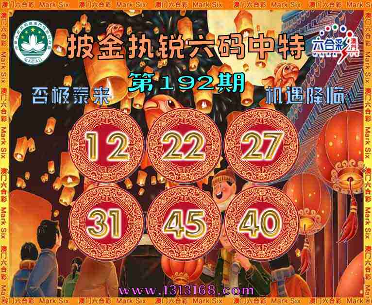 192期:〖披金执锐〗 ☝️六码中特☝️【12.22.27.31.45.40】开:45